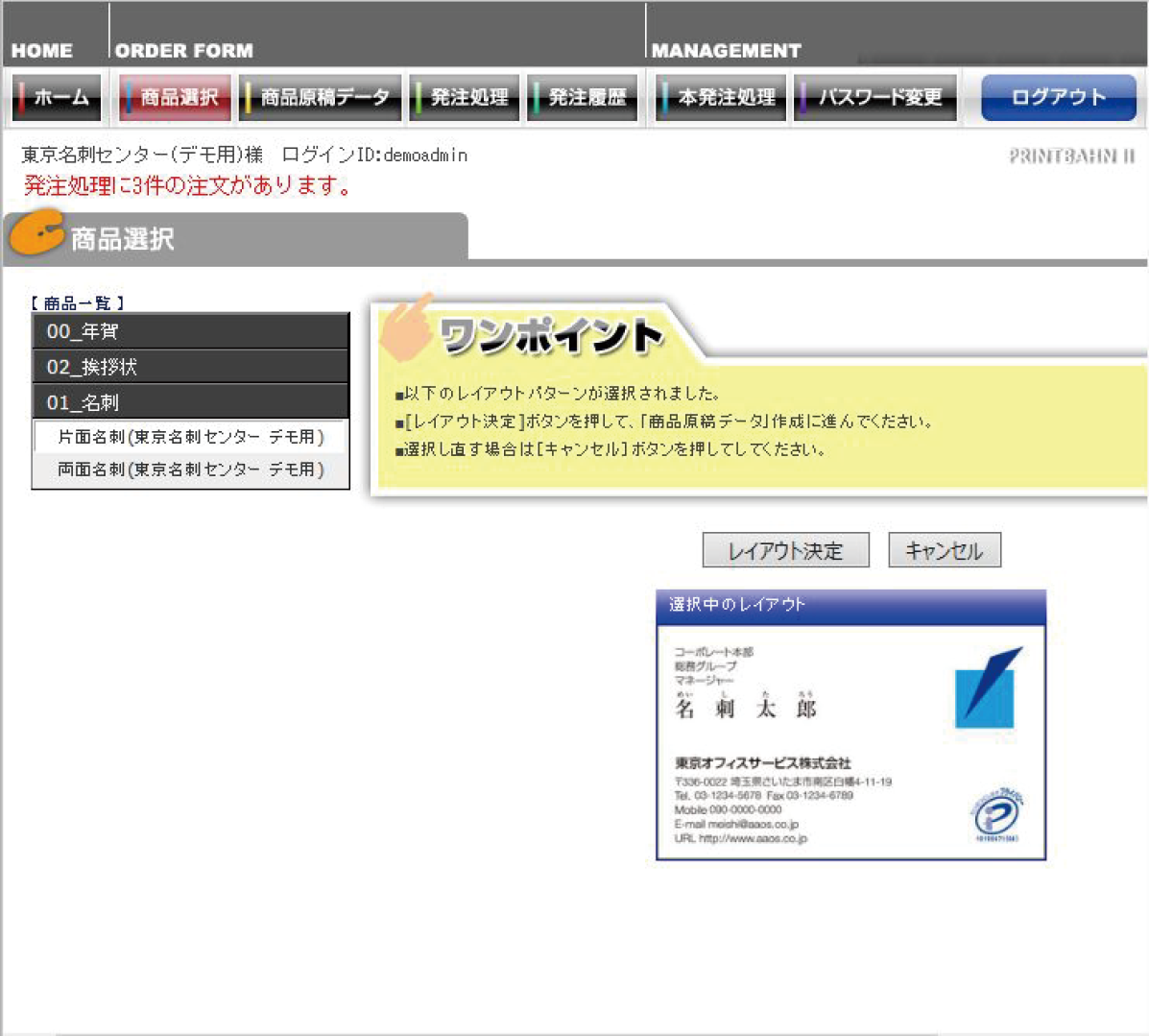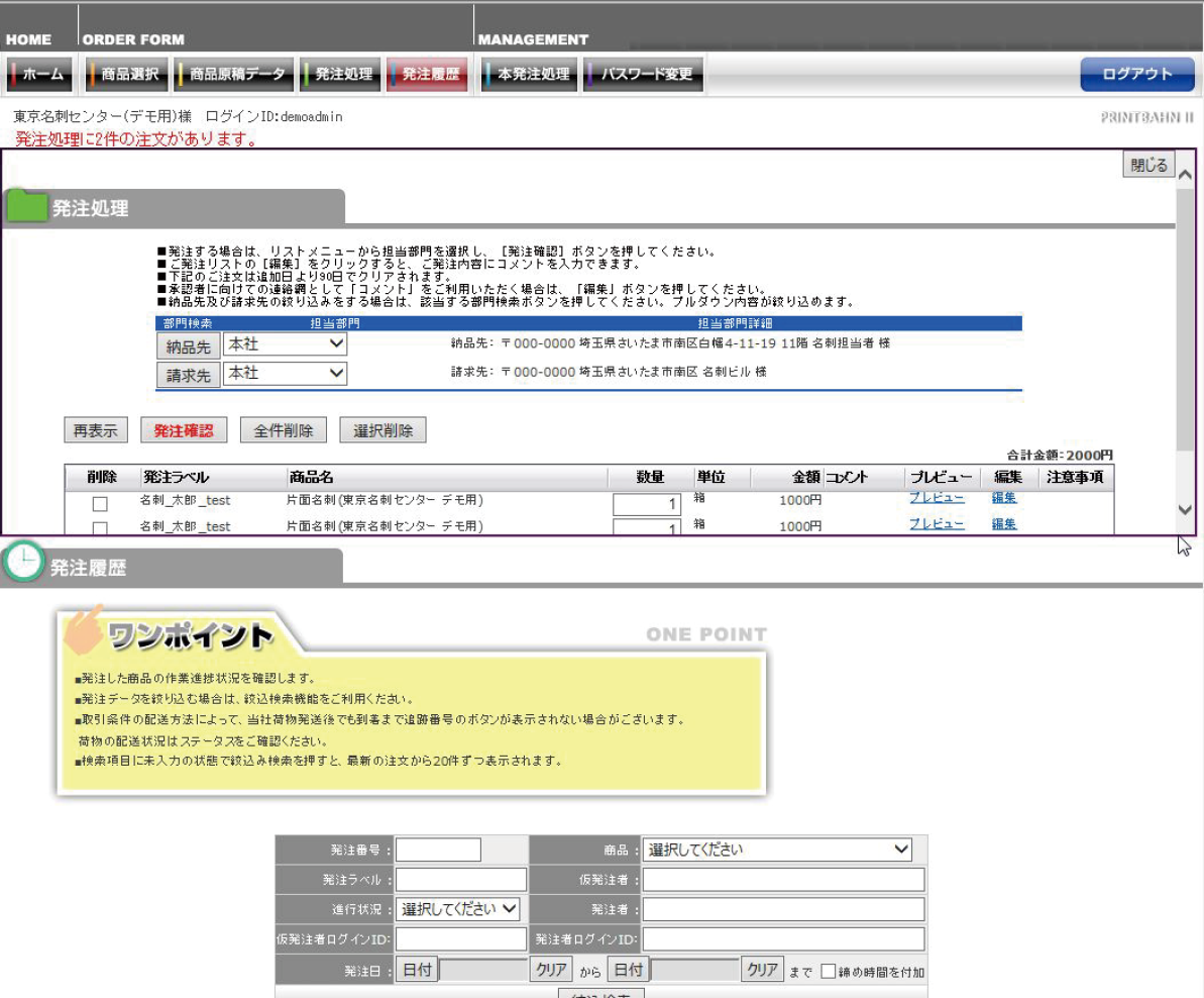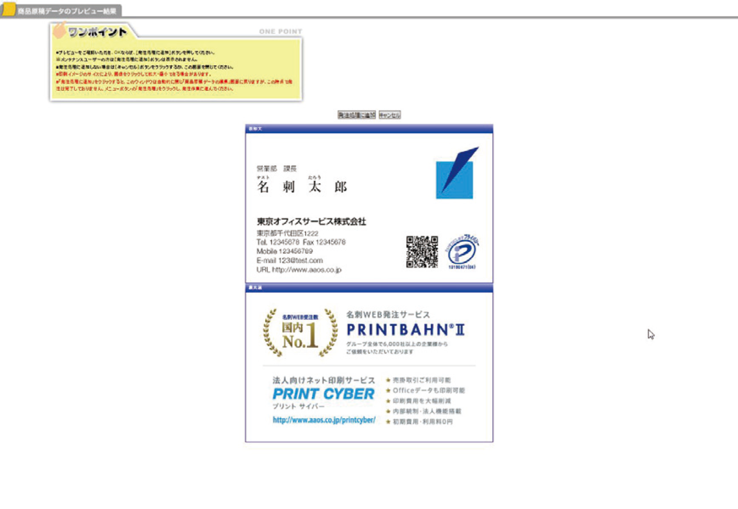 発注前には必ずプレビューで名刺を確認できるので誤発注を防げます。